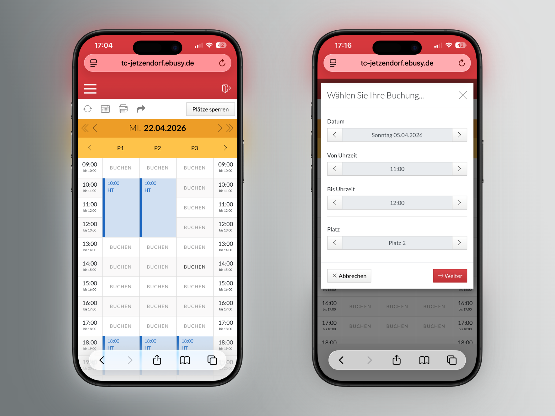Platz buchen per Klick